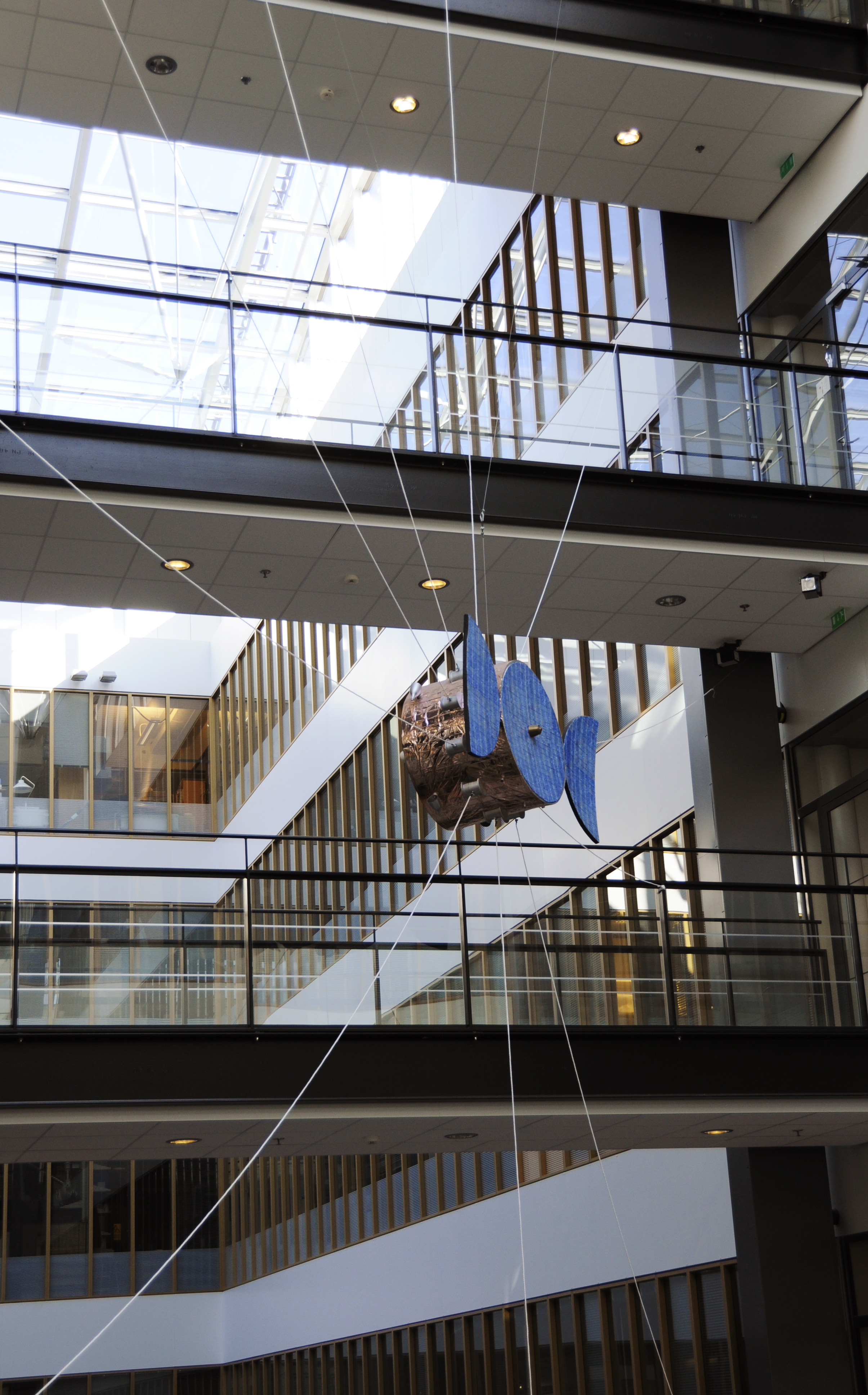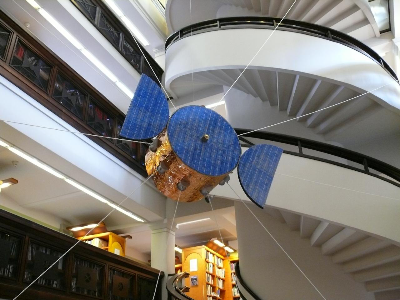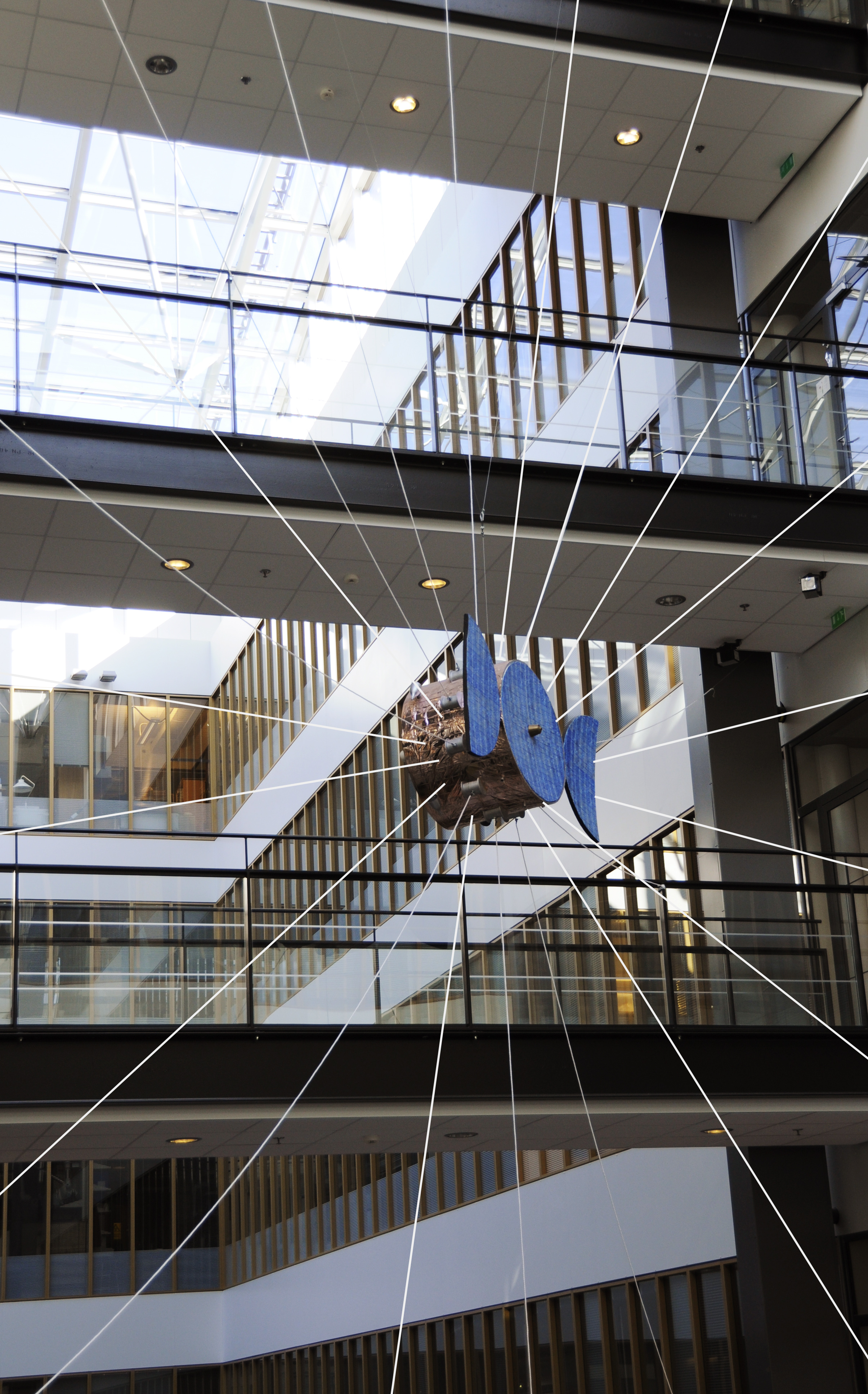 Model of electric sail hanging on display in Rikhardinkatu public library in Helsinkin October 2008. Model design and photography by Markku Mäkelä/Finnish Meteorological Institute.